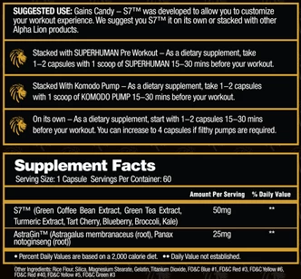 S7 is a blend of seven (7) plant-based ingredients that has been clinically shown to increase nitric oxide (NO) by 230%. Paired with stimulants and other nitric oxide boosters this can be a potent pre-workout ingredient.