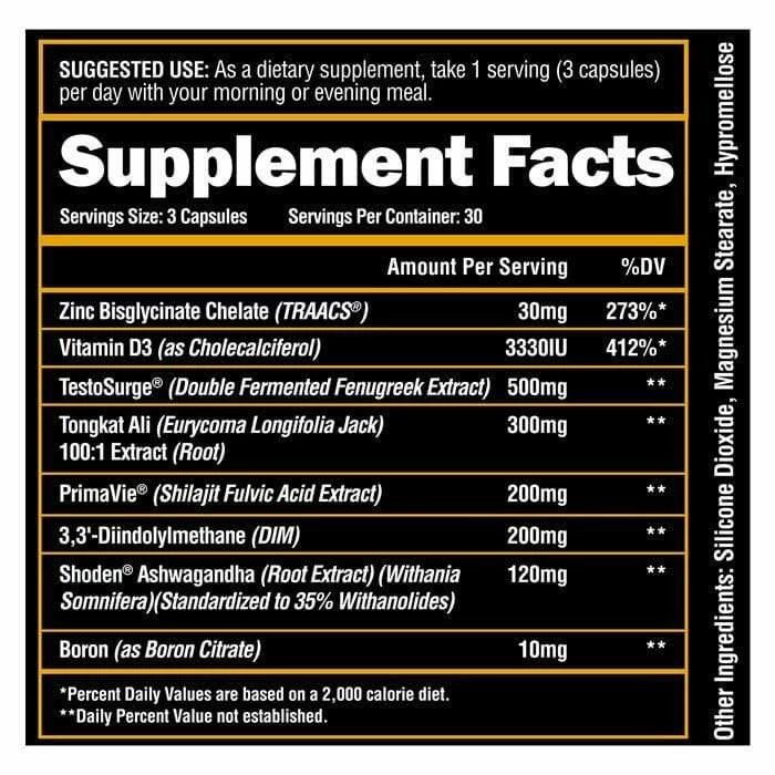 - 500mg TestoSurge + 3330 IU Vitamin D3 + 200mg PrimaVie For Maximizing Natural Test Production