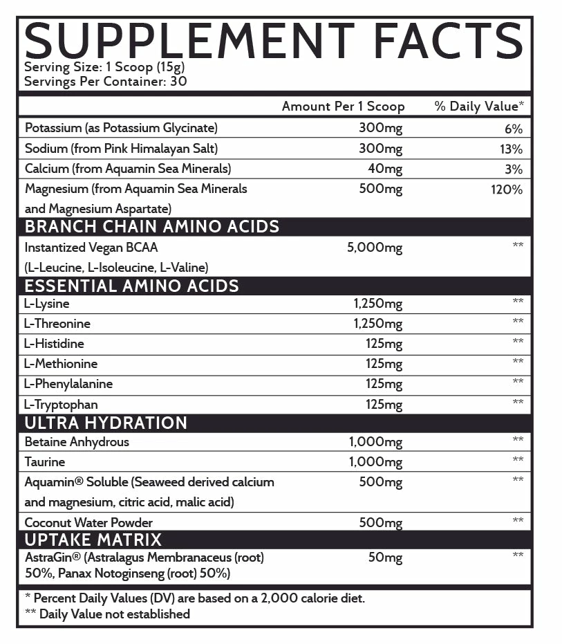 Of all the staples you should have in your daily workout routine, aminos are one of the most useful for not only helping you recover optimally, but also encouraging optimal hydration. Inspired Nutraceuticals Amino has been thoroughly formulated to not only address traditional BCAA, but also provide a complete EAA profile for maximum protein synthesis response. Going beyond aminos, you’ll also be getting 1g of taurine, 500mg of Aquamin and 500mg of coconut water powder for enhanced hydration state. Topping it all off, you can rest assured that only vegetable based BCAA are used in Inspired Nutraceuticals Amino…no duck feathers or human hair here.
