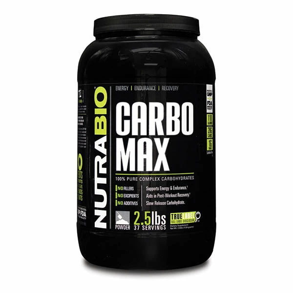 NutraBio CarboMax was created to be the ultimate source of carbohydrates. It is pure complex carbohydrates made from LCPF-50 (long-chain polymetric fraction) maltodextrin, meaning that it has quick and sustained energy production properties for the user. The glucose polymers in CarboMax are metabolized at a slow steady rate, unlike the competition meaning that they are the smarter choice for individuals looking to increase muscle endurance, mass and recovery without the use of simple sugars.