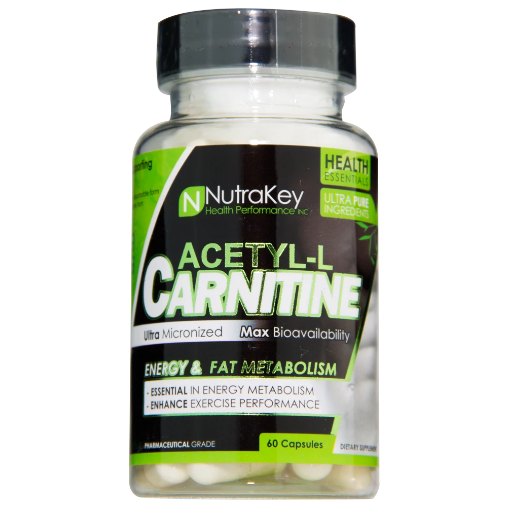 NutraKey products are Pharmaceutical grade ultra-pure for maximum bioavailability. Pure amino acid, HPLC verified. Energy & Fat Loss Enhance Metabolism Improves Exercise Capacity Acetyl-L-Carnitine is a stabilized & more absorbable form of the amino acid L-Carnitine. Acetyl-L-Carnitine plays an important role in protecting & supporting brain & muscle function. As an antioxidant, Acetyl-L-Carnitine protects neurons from damage caused by superoxide radicals. Improves exercise capacity and fat loss: Acetyl L-Carnitine facilitates the metabolism of fatty acids for energy generation. A greater reliance on fat for energy can result in a sparing of muscle glycogen, an enhancement of exercise performance and a reduction in stored body fat. Acetyl L-Carnitine has profound effects on endurance and exercise performance by reducing the respiratory exchange ratio and reducing lactic acid accumulation in muscles extending exercise capacity before fatigue. Carnitine comes in both L- and D-carnitine forms. However, only the L- form is biologically active. The D- form is completely inactive and in large quantities and particular conditions, the D- form may inhibit the utilization of L-carnitine. NutraKey L-Carnitine supplements contain no synthetic D-Carnitine or DL-Carnitine. D-Carnitine and DL-Carnitine are less effective than L-Carnitine. D-Carnitine and DL-Carnitine are not recommended because of their adverse physical side effects. Benefits of Acetyl L-Carnitine: โข Essential in energy metabolism โข May enhance cognition โข Involved food metabolism into energy โข May significantly reduce severity of depressive symptoms โข Significant improvements in exercise performance โข Profound effects on endurance
