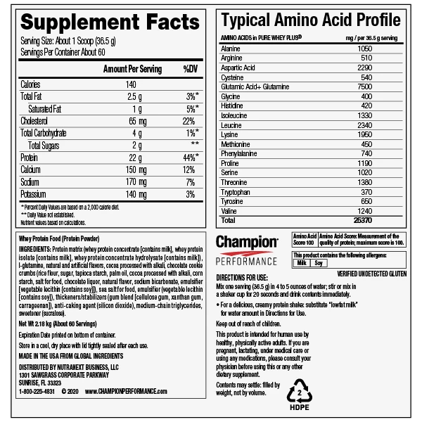 satisfy any palate, Pure Whey Plus will fuel your gains like a Champion (pun