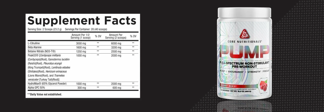 Everyone knows how good a muscle pump feels during a tough workout. It is a great feeling of accomplishment and signs of an intense workout. Core Pump can take your pump and vascularity to the next level! Never miss out on a great pump again!Pump contains properly dosed and selected ingredients to increase blood flow and improve performance.
