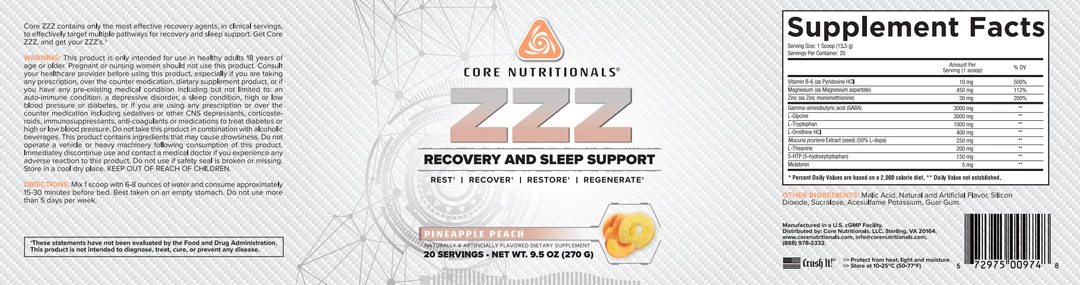Core ZZZ is a night time recovery and sleep support formula developed by pro bodybuilder, Doug Miller. Core ZZZ contains clinical doses of ingredients designed to help you get to sleep and improve recovery. This supplement is great for anyone who takes pre workout later at night and needs help getting to sleep, or those individuals who could benefit from increased recovery while they sleep (everyone). This supplement contains high dosed ingredients totaling a whopping 12g/scoop. All of the ingredients are appropriately dosed according to clinical studies and are high quality.