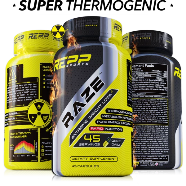 Repp Sports Raze was designed to put the cutting edge on your fat loss plan. Formulated using one of the hottest stimulants available to day, DMHA rush your system with dopamine and noradrenalin, resulting in a glowing burst of energy like nothing before.