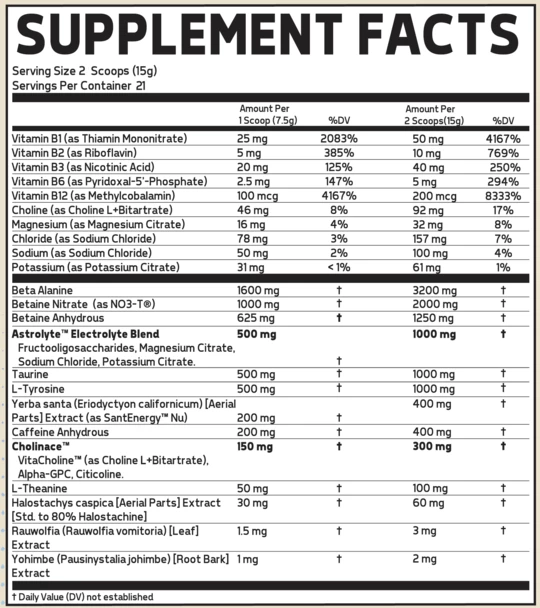 - 3.2g Beta Alanine + 2g Betaine Nitrate + 1.25g Betaine Anhydrous for Endurance & Power Output