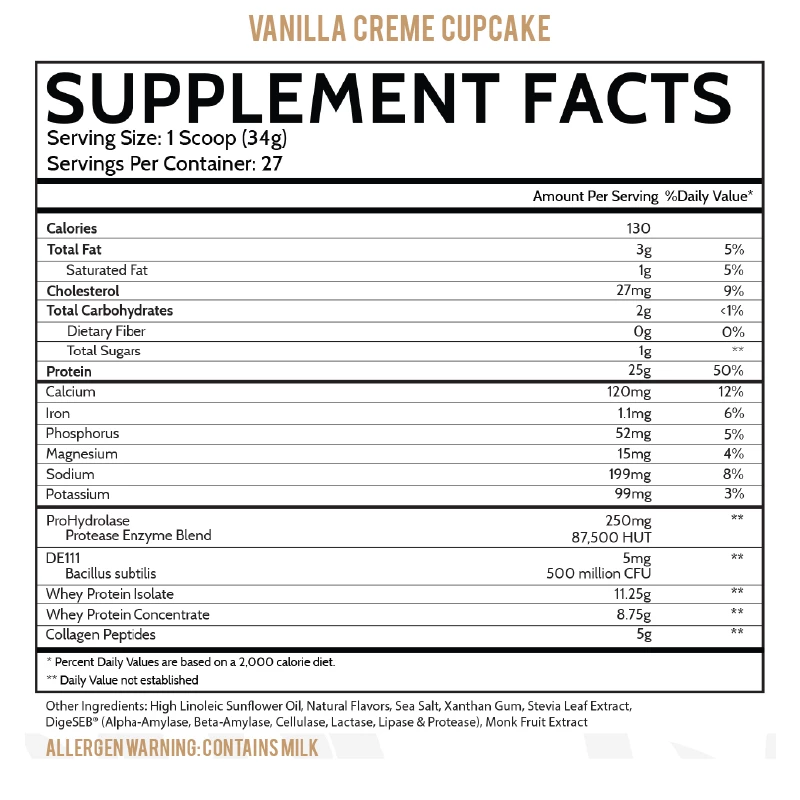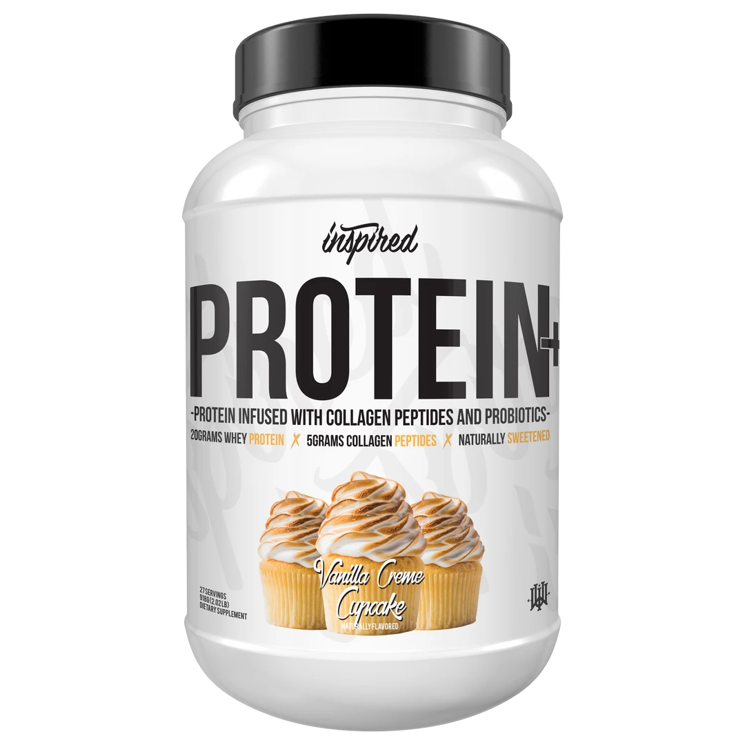 Inspired Nutra brings you Protein+, the only Whey Protein & Collagen supplement on the market! Get the benefits of Collagen (healthier hair, skin, nails) in your daily protein supplement. In order to gain muscle or lose fat, studies show that you need approximately 1g of protein per pound of lean body mass per day. Inspired’s Protein+ contains fast digesting Whey Protein Isolate & Concentrate which is ideal to take pre or post workout. Whey Protein also has one of the best amino acid profiles of any protein source, so it is a great addition to any diet. Inspired has also included a digestive enzyme blend to help combat feelings of gastric distress which sometimes accompanies the consumption of Whey Protein.ย