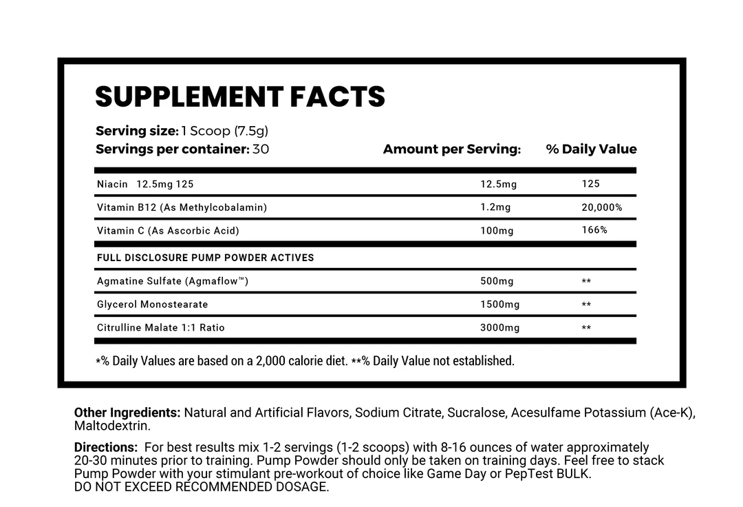 Take 1-2 scoops 20-30 mins prior to workout. Two scoops will give you an EXTREME pump!