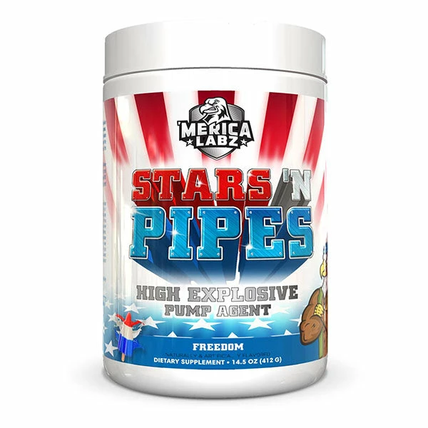 Stars N Pipes is THE HIGHEST DOSED Nitric Oxide Booster that you will ever find. Merica Labz goes above and beyond with this supplement by including not only a skin splitting dose of 6g pure L-Citrulline, but also over 3x the average dose of Hydromax Glycerol along with Betaine Anhydrous. Stars N Pipes is fast making a name for itself as a potent pump enhancer, and can be used either alongside your stimulant based pre workout (such as Red White & Boom), or as a stand alone non-stimulant pre workout.
