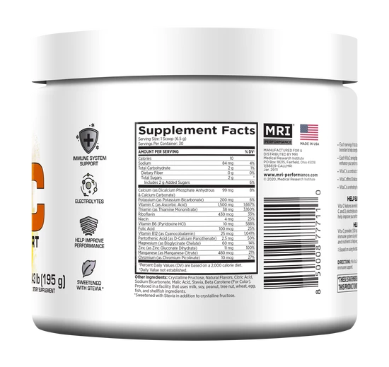MRI Vita-C Immune Support is a tasty, convenient way of supplementing a hefty dose of the crucial Vitamin C….the equivalent of more than 15 oranges to be exact!