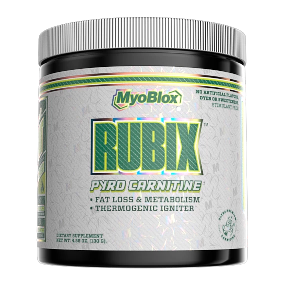 Myoblox brings us Rubix. A fully transparent thermogenic formula that burns fat by utilizing multiple pathways to stimulate lipolysis. Rubix is a stimulant free formula that will boost your metabolism, suppress your appetite, and regulate insulin levels without making you feel jittery. The inclusion of Micracarn really makes this fat burner unique. Macracarn is a micro-peptide inflused carnitine that is exclusive to Rubix and truly enhances the fat burning process.