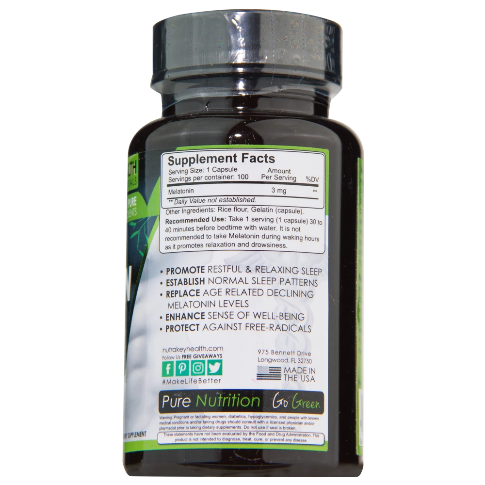 Nutrakey Melatonin will help you get to sleep faster and get more restful, deep, quality sleep. Melatonin is naturally released by the brain during low light conditions to help the body relax and get to sleep. Supplementing with Melatonin is a drug free, natural way to improve sleep patterns and sleep quality. Unlike pharmaceuticals, there is no risk of dependence with Melatonin.