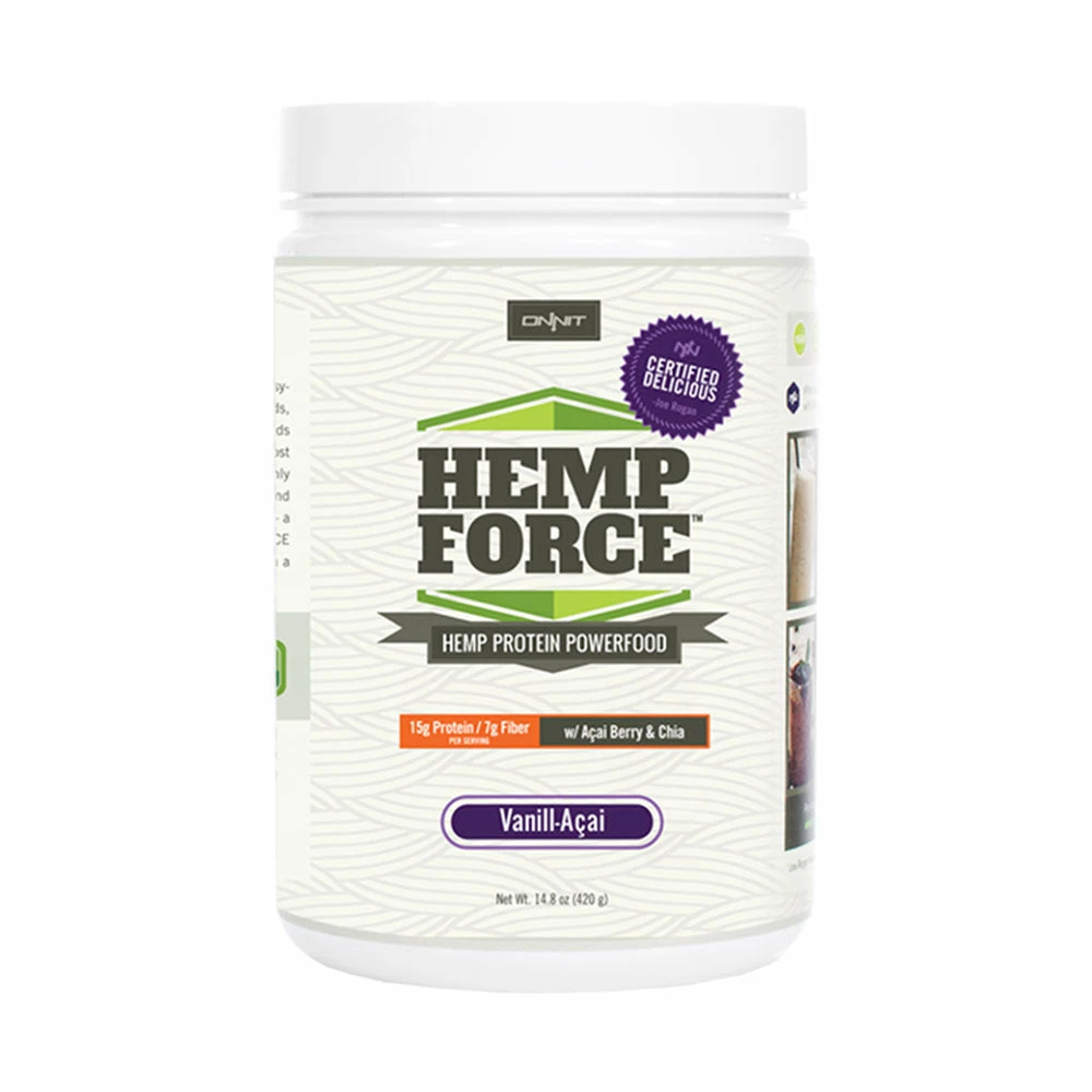 Hemp Force is a high quality, nutrient dense, plant based protein. The main ingredient is hemp protein, which is a complete protein source high in amino acids and completely natural. Hemp Force contains no animal ingredients and is 100% plant based. Other key ingredients include Acai Berry, Mesquite Powder, Chia Seeds, and Flax Seeds. These superfoods are high in antioxidants, micronutrients, and healthy fats such as ALA and Omega 3’s. The taste of vanilla acai Hemp Force is amazing, and mixes extremely well with other flavors such as coffee, tea, and berries.