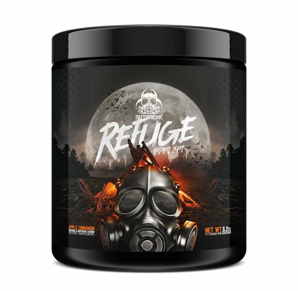Outbreak Refuge is a complete sleep product formulated to boost recovery by calming your body down and helping you get a deep and restful sleep. Utilizing well known sleep inducing ingredients, you will be getting the best night sleep possible and feel fully rested and recovered. Sleep is very important in the recovery process and your performance will suffer if you donβt get enough sleep, and deep sleep at that. Not only aiding in sleep, Refuge contains ingredients that reduces cortisol levels and relieve stress. High cortisol leads to muscle breakdown, which is what we donβt want. Ensure your muscles are protected and recovering properly with the ultimate sleep aid formula, Refuge.