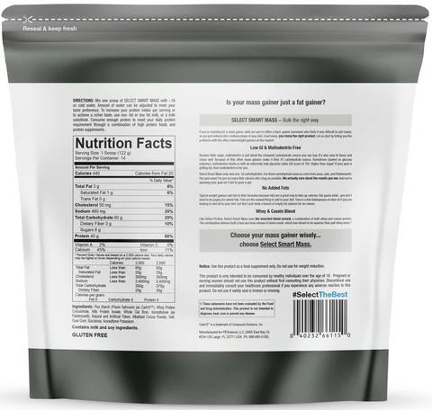 Traditional weight gainers were notorious for being packed with calories, and unfortunately, the regard for keeping the body lean and optimally digesting the nutrients within was an afterthought as long as the scale was moving up. PEScience Select Smart Mass is a revolutionary lean muscle, weight gaining solution packing 40g of sustained release protein, 60g of premium carbs from Palatinose and Carb10 and no added fats/sugars, this is the premium solution for mass gain. No blood sugar spiking maltodextrin or cheap fillers, Smart Mass is indeed the intelligent way of helping to increase your lean muscle mass while stacking the deck in your favor to stay lean. Rethink the way you attack lean mass gain with PEScience Select Smart Mass!