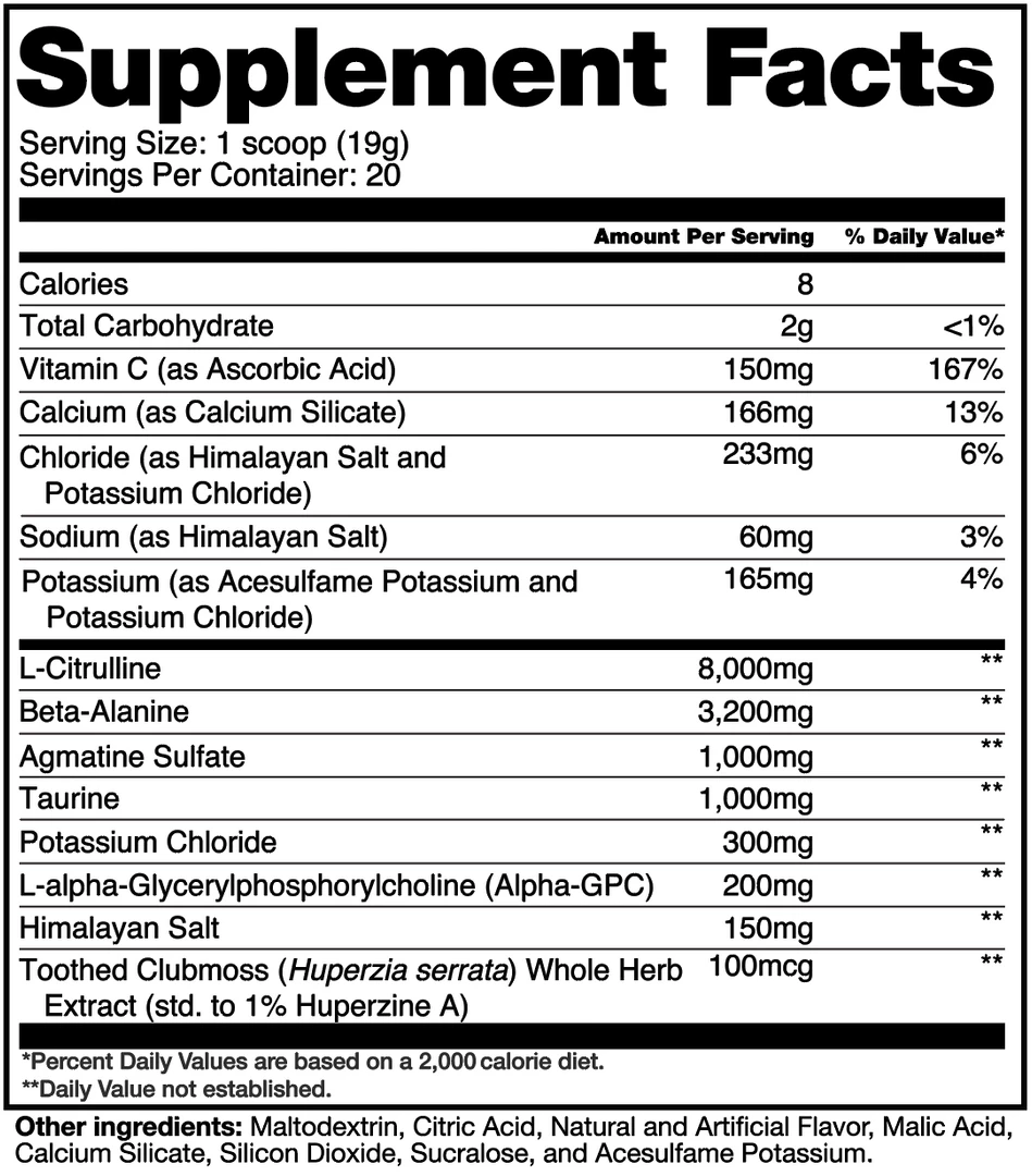 - 8g Citrulline + 1g Agmatine Sulfate for Maximum Vasodilation