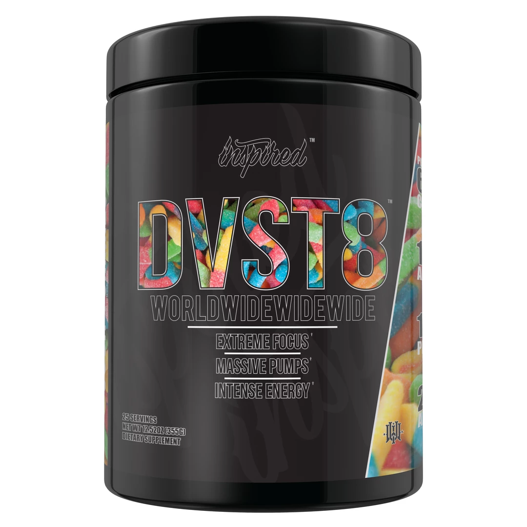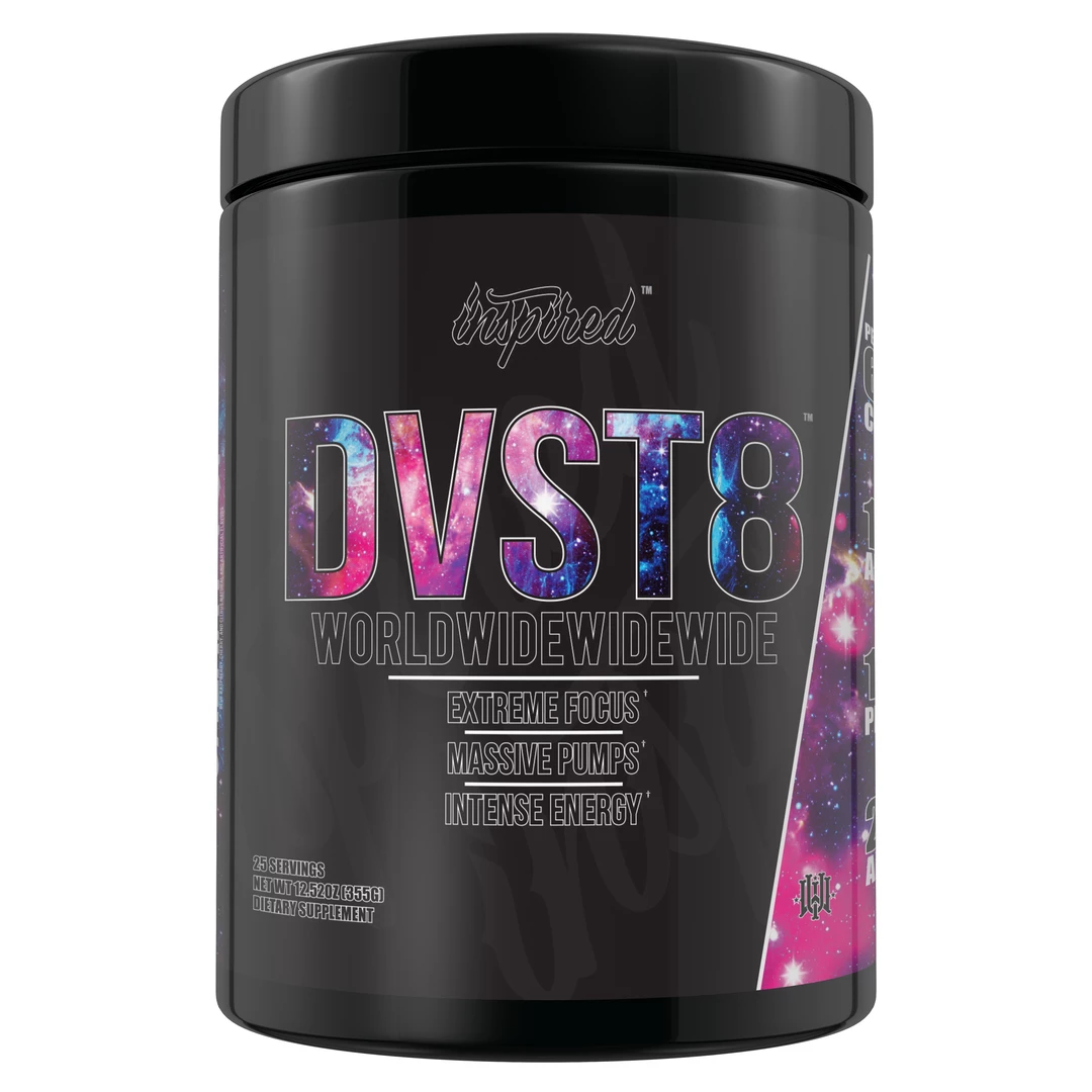 If youโve searched the world high and low for a badass pre-workout that will help you take your workouts to the next level, DVST8 World Wide is the answer. Formulated using 6g of Citrulline & 1.5g N03-T for maximum pumps and vasodilation, 2.5g Betaine Anhydrous + 1g Peak02 for enhanced training endurance and recovery and topped off with 300mg of natural caffeine and 125mg of Dynamine for premium focus and energy enhancement. Lastly, youโll keep anxiety and jitters at bay by the inclusion of KannaEase, which further enhances mood state and energy levels.