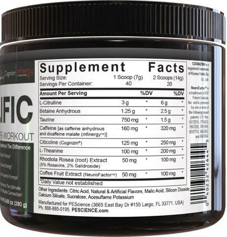 - 320mg Caffeine + 200mg Cognizin for Enhanced Energy & Focus