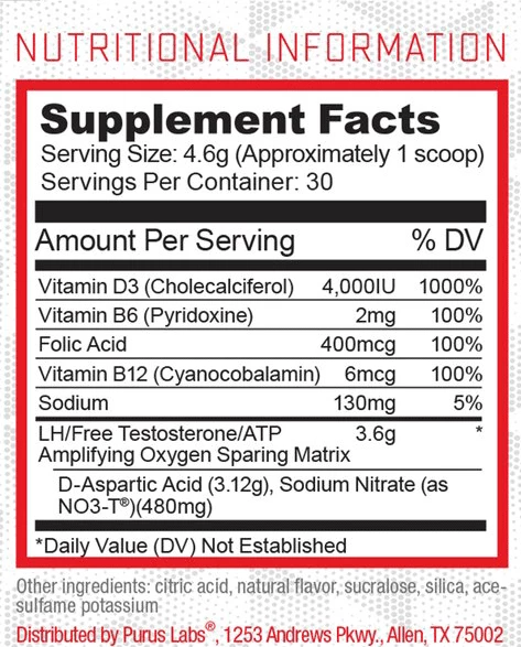D-POL combines provocative testosterone research and nitric oxide production, to yield the industry’s first, validated, Hormone/Free Testosterone elevator AND true NO potentiator.