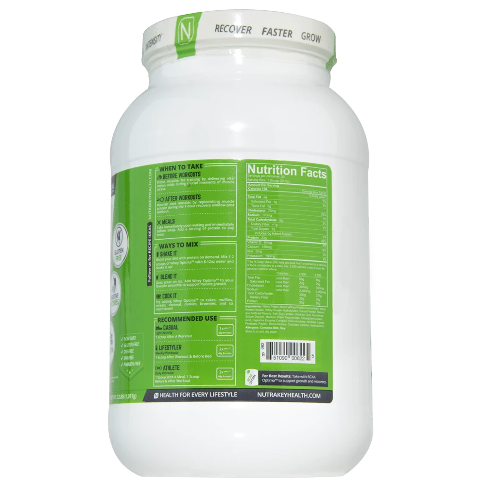 Whey Optima protein powder provides 23g protein per serving, so mix up one or two scoops whenever you need some extra protein in your diet.