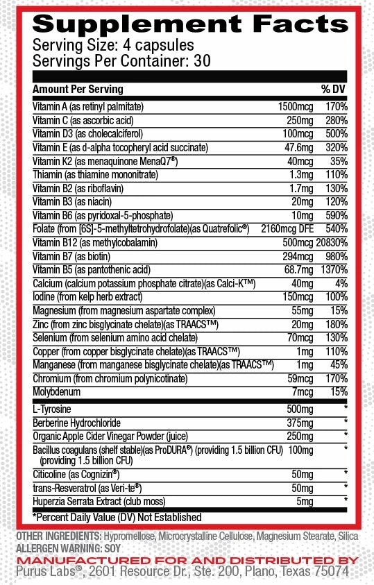 - Features Cognizin Citicoline and Tyrosine for Focus Support