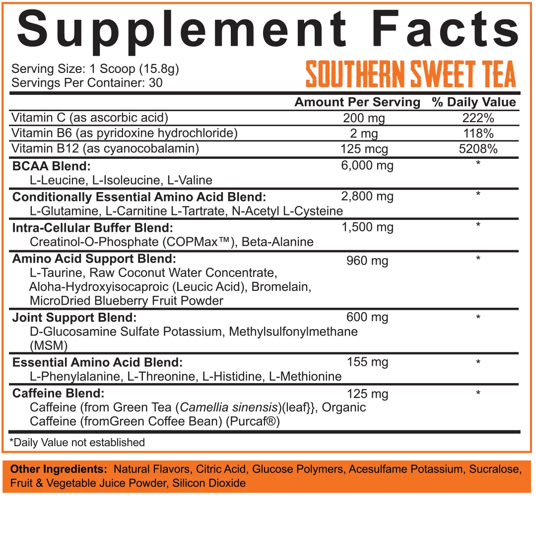 - 6g of BCAA + 2.8g Conditionally Essential EAA/serving