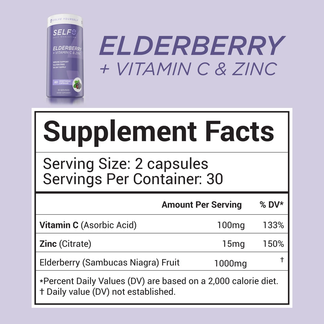 Hot Sale ๐ Vitamins & Minerals SelfE Elderberry + Vitamin C & Zinc (60 Vcaps) ๐